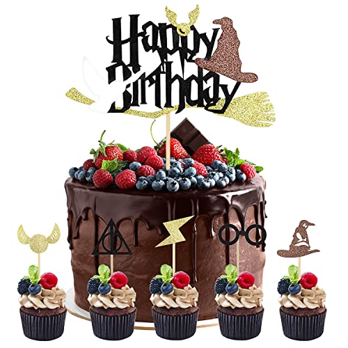Tårtdekoration födelsedag glitter wizard cupcake toppers trollkarl tårtdekoration för pojke flicka magisk temafest tillbehör (21 stycken)