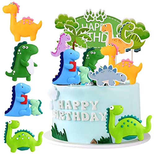 OSDUE Cake Toppers, Grattis på födelsedagen Cake Toppers dekorationer, tema födelsedagstårtdekorationer, Animal Cupcake Toppers, Återanvändbara, för barn Pojke Tjej, födelsedag dusch festtillbehör (Dinosaurie)