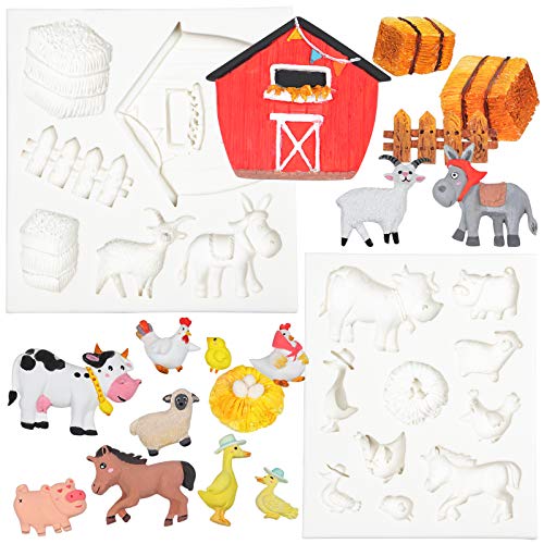Silikonformar för bondgårdsdjur fondantformar cupcake-toppers tårtdekoration 2-pack