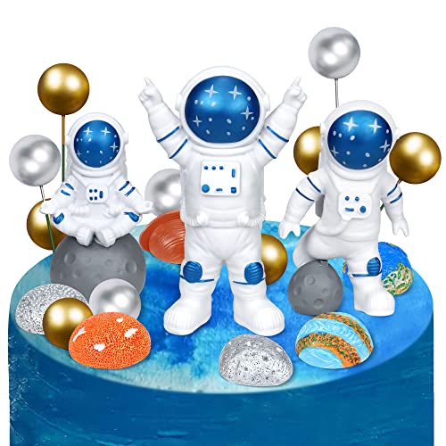 22 st utrymme tårtdekoration, rymd cupcake toppers astronaut statyett födelsedag yttre rymden tema festdekorationer tillbehör planet raket pärlbollar och stjärna gör-det-själv tårtdekorationer