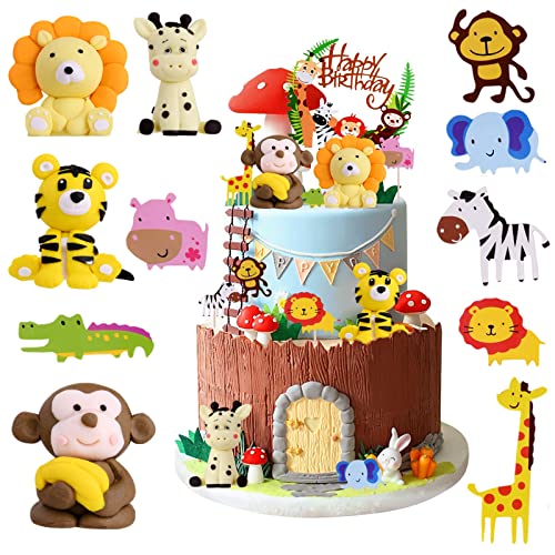 OSDUE Cake Toppers, Grattis på födelsedagen Cake Toppers dekorationer, tema födelsedagstårtdekorationer, Animal Cupcake Toppers, Återanvändbara, för barn Pojke Tjej, födelsedag dusch festtillbehör (Djur-)