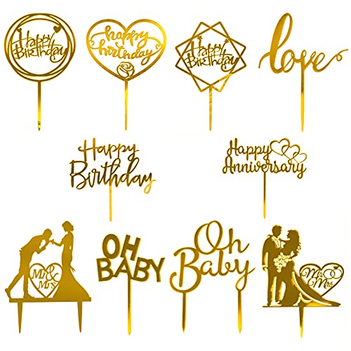 Tårta topper, grattis på födelsedagen cupcake toppers tårtdekorationer för bröllop, baby shower tema (10 stycken)