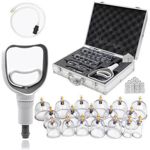 Vakuumpump fysioterapi sugkoppar, anti-celluliter sugkoppar massage för vacumterapi (18 delar), för ansikts celluliter och kropp, med instruktioner, Cupping Set