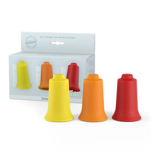 BellaBambi® Set, fascia-behandling tillverkad i Tyskland – tillverkad i medicinsk silikon, BellaBambi Cupping Trio, 3 stycken – gul/orange/röd (låg/medel/hög intensitet)