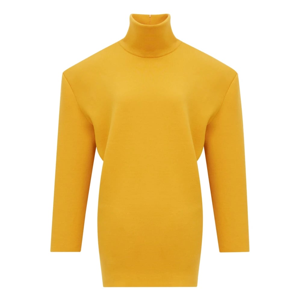 Saint Laurent, Stickade Tröjor , Dam, M, Nylon, Curcuma Turtleneck Mini Dress