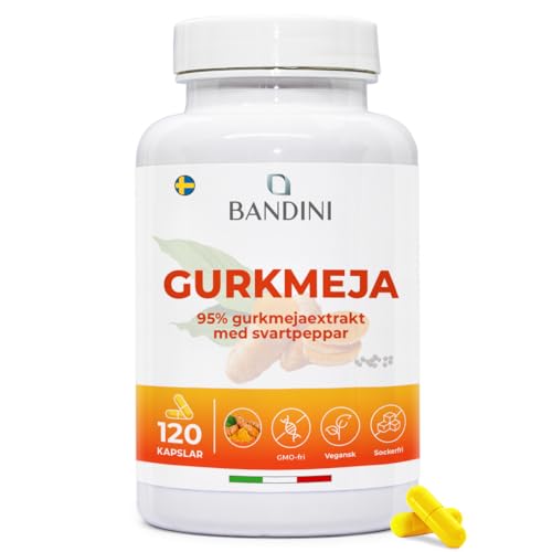 Bandini® Turmeric 120 kapslar/4 månaders förbrukning | 700 mg gurkmeja per kapsel från 95% gurkmejaextrakt + piperin från svartpeppar | Hög dosering | 100% vegan och fri från tillsatser