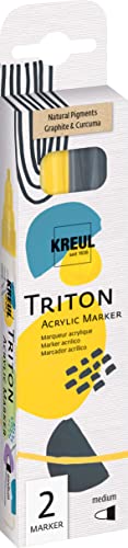 Kreul 17895 – Triton akryl markör medium uppsättning av 2, naturliga pigment, 2 akrylkritor i curcuma och grafit, vattenbaserade färger, hög färgintensitet, för duk, papper, kartong och mycket mer