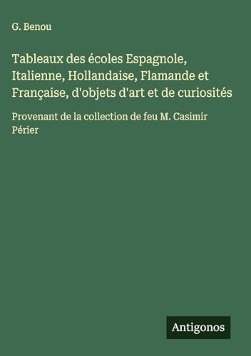 Tableaux des écoles Espagnole, Italienne, Hollandaise, Flamande et Française, d'objets d'art et de curiosités: Provenant de la collection de feu M. Casimir Périer