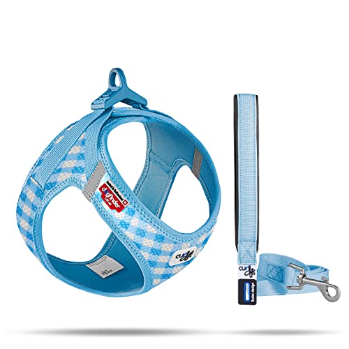 Vest sele curli Clasp Air-mesh SkyBlue-Caro XS och koppel M