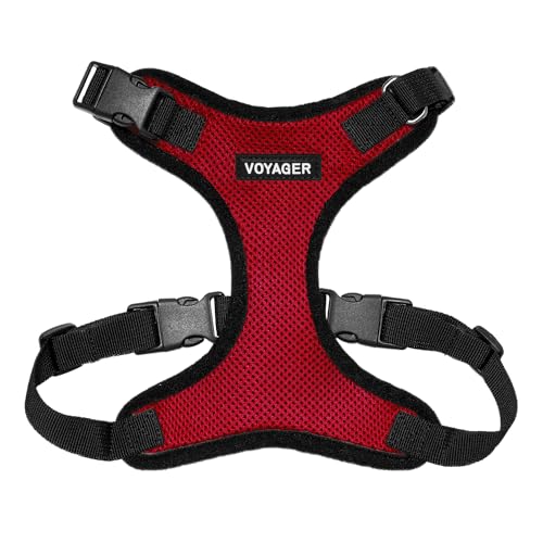 Voyager Step-in-lås, husdjurssele för alla väder, justerbar step-in-sele för katter och hundar av bästa husdjurstillbehör – röd/svart kant, XS