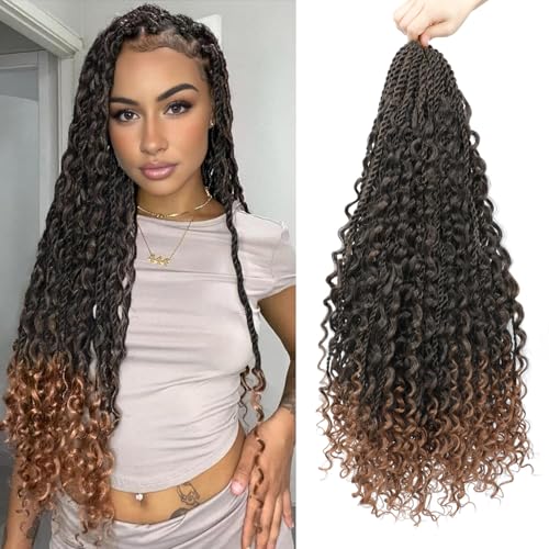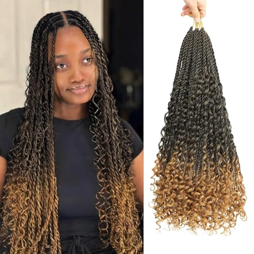 TOOPBIUTI Senegalese Twist Crochet Hair 24 Inch 6 Pack Boho Goddess Island Twist Pre-Looped Crochet Hair with Curly Ends (4#, 18inch-6pc)