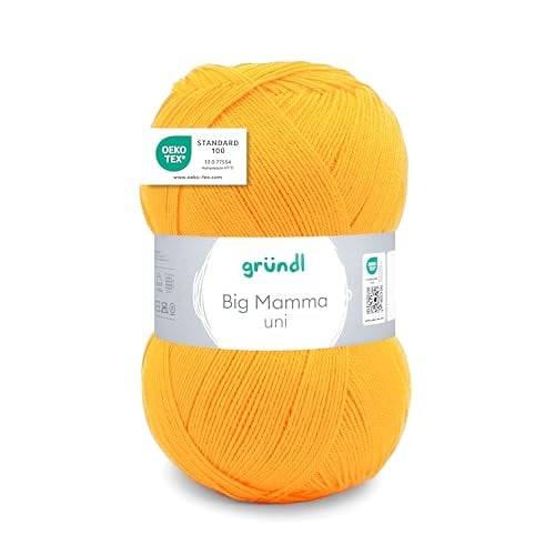 Gründl Big Mamma uni (stick- och virkgarn med ulliknande karaktär tillverkat av 100% polyakryl, 400 g/1040 m, nåltjocklek: 3,5 – 4,5, 1 x 400 g), curry gul, 29 x 16 x 12 cm