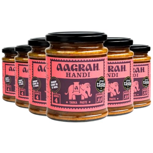 Aagrah Handi Tarka indisk curry matlagningssås - autentisk restaurang receptbas - medium värme - 270 g burk serverar 3-4 - fodral med 6 burkar
