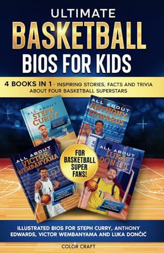 Ultimate Basketball Bios For Kids: 4 books in 1 - Inspiring stories, facts and trivia about basketball superstars: Illustrated bios for Steph Curry, Anthony Edwards, Victor Wembanyama and Luka Dončić
