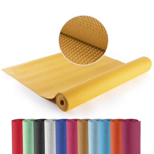 DoYourYoga fitnessmatta, yogamatta "Kirana" av ECO-PVC – 183 x 61 x 0,4 cm – halkfri och robust – gymnastikmatta, yogamatta, träningsmatta, pilates workout – curry