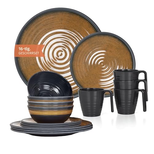 Moritz Camping Porslin av melamin för 4 personer 12 delar | diskmaskinssäkra | Picknick porslinsset | Porslin campingservis I Stone Curry Design