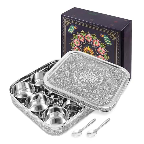 KSJONE Designer indisk kryddburk rostfritt stål Masala Dabba stor curry matlagning krydda tiffin plåtlåda kök masala behållare kryddbehållare 9 fack förvaringsset