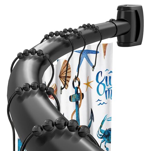 Böjd duschgardinstång 102–188 cm justerbara svarta runda duschstänger böjda duschgardinstång badrum, badkar, bås rostskydd, premium rostfritt stål behöver borras
