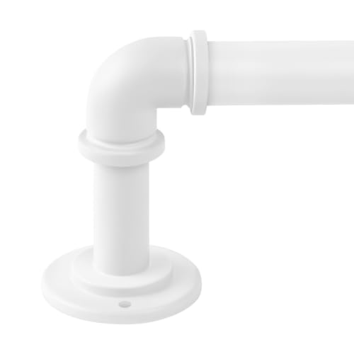 OLV Industriella gardinstänger för fönster, 182,9–365,8 cm (1,8–3,7 m), 2,5 cm i diameter, omslutande, mörkläggning, justerbara och robusta gardinstänger för inomhus- och utomhusbruk, vit