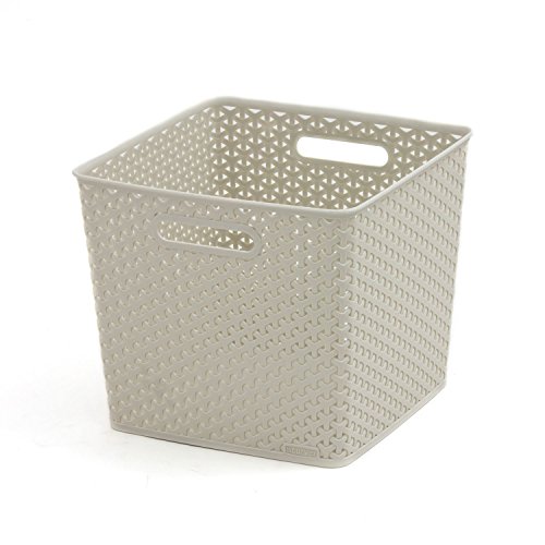 Curver My Style rottingeffekt uppsättning av 3 kök, vardagsrum, badrum, sovrum, verktyg stora rektangulära förvaringskorgar 18 liter - ljusgrå