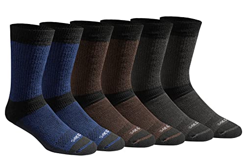 Dickies Men's Dri-tech Moisture Control Crew Socks Multipack, 3.0 Full Cushion Brown Blue Grey (6 Pairs), Shoe Size: 6-12