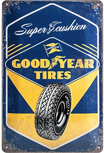 Nostalgic-Art Plåtskylt i retrostil, Goodyear – Super Cushion – Presentidé för bil- och motorcykelfantaster, av metall, Deko vintagedesign, 20 x 30 cm