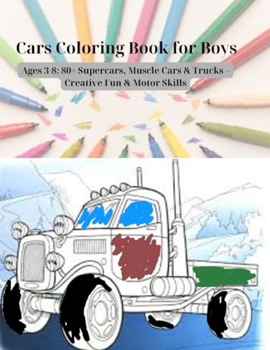 Cars Coloring Book for Boys Ages 3-8: 80+ Supercars, Muscle Cars & Trucks – Creative Fun & Motor Skills: Race Cars, Off-Road Trucks, Custom Mods & more – Perfect Gift for Young Auto Lovers