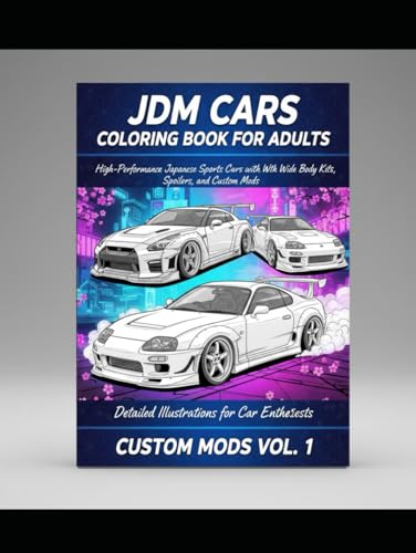 JDM Cars Coloring Book for Adults: High-Performance Japanese Sports Cars with Wide Body Kits, Spoilers, and Custom Mods – Detailed Illustrations for Car Enthusiasts