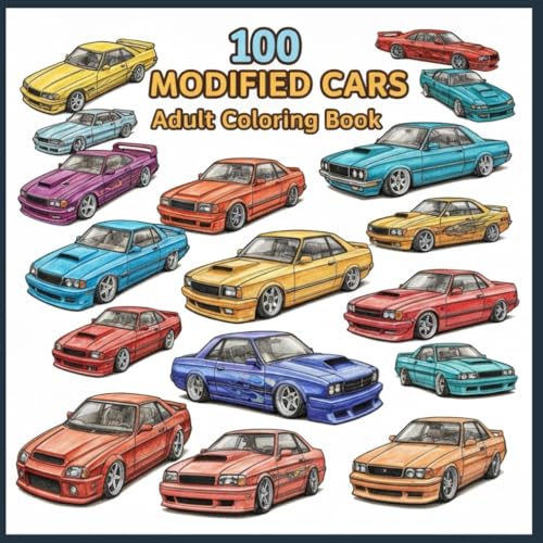 Modified Cars Coloring Book: JDM Legends: 50 Custom, Widebody, and Drift Cars from Japan Including Skyline, Supra, RX-7, Lancer Evo, and more. ... Art for Adults and Teens, and Stress Relief.