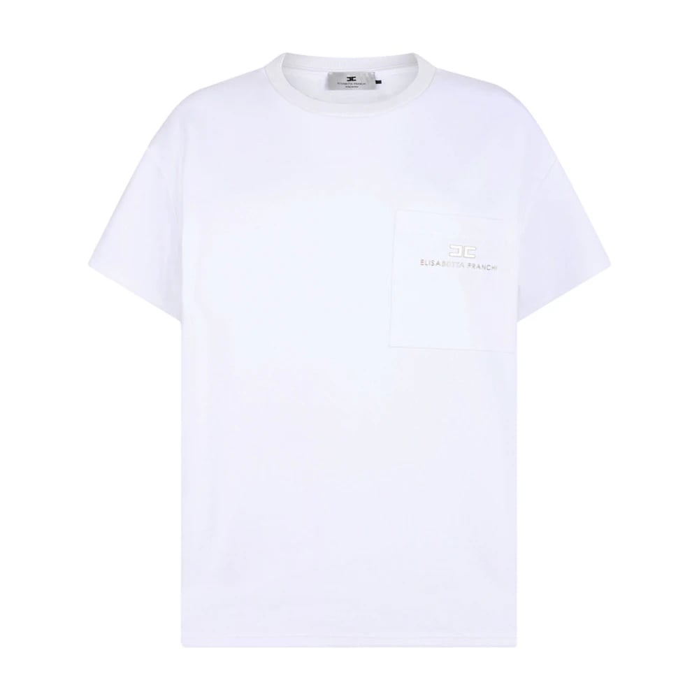 Elisabetta Franchi, Toppar , Dam, S, Krita Heavy Jersey T-shirt med Cut-Outs