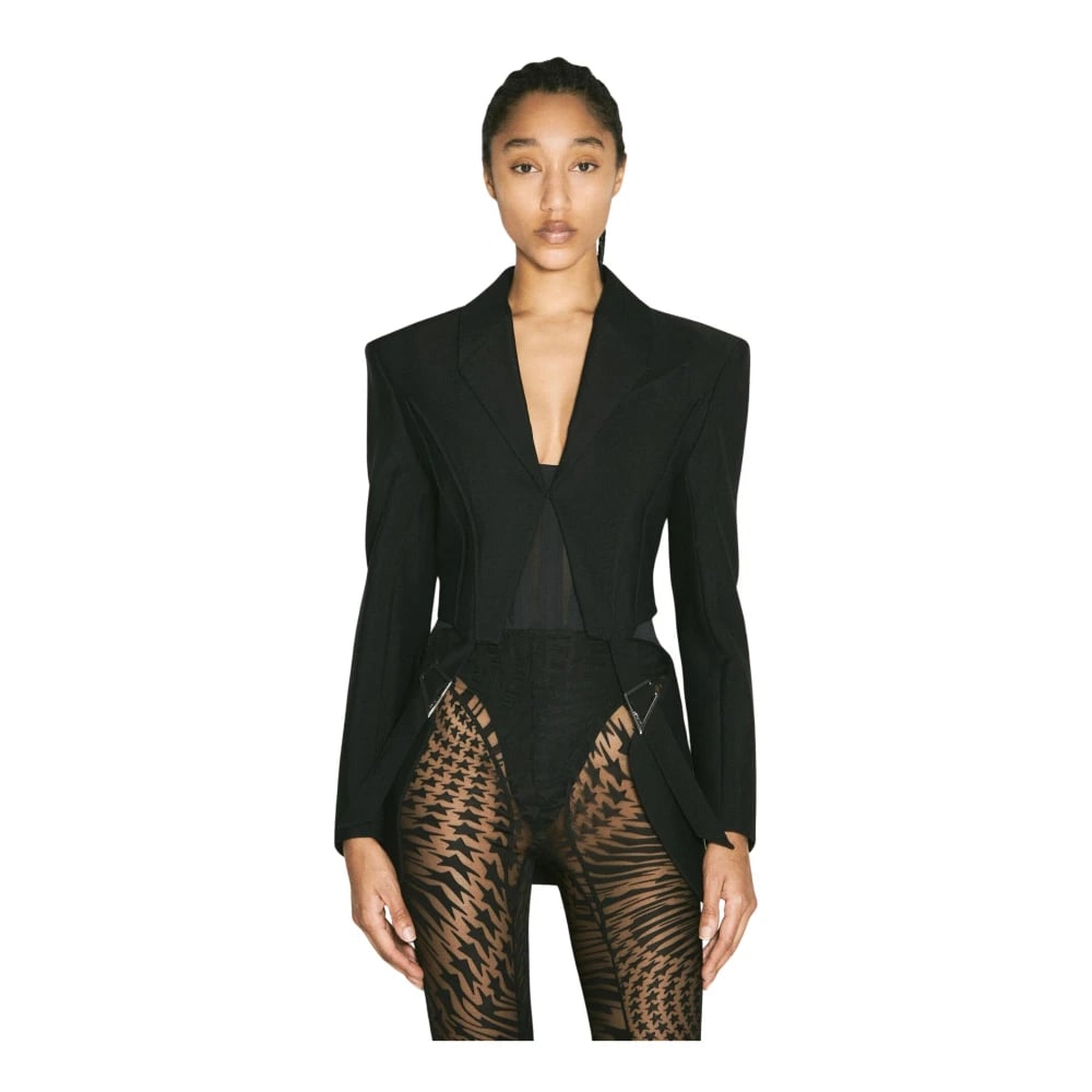 Mugler, Jackor , Dam, S, Skräddarsydd kavaj med spännen och cut-outs