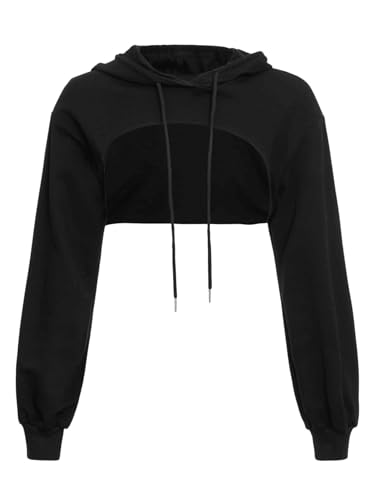 GORGLITTER Damcrop huvtröja pullover, mycket korta tröjor, långärmad tröja, rund krage, cut outs skjortor med huva, svart, S