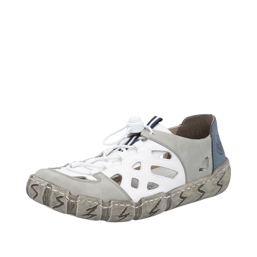 Rieker Damtofflor, sportigt läder, sneakers, cut-outs, elastiskt band 940366, Vit, 36 EU