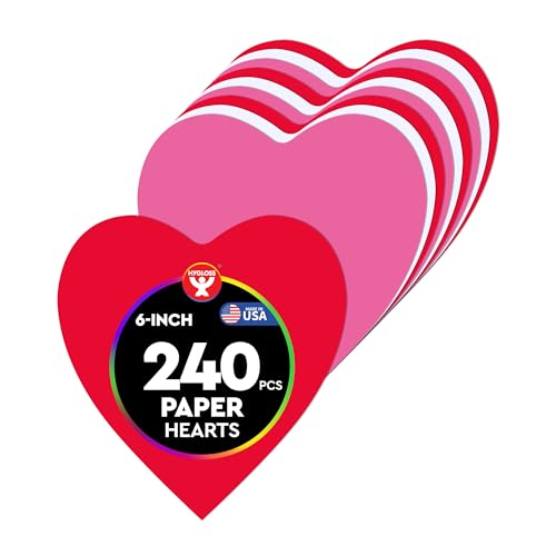 Hygloss Heart Shape Paper Cut-Outs for Arts & Crafts-Many Creative Uses-Valentine’s Day Activities-6 Inches-240 Pcs, Red, Pink & White
