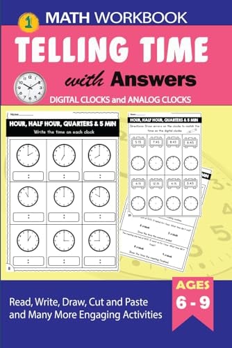 Telling Time Math Workbook: Read, Write, Draw, Cut and Paste and Many More Engaging Activities, Reading Time with Digital Clocks and Analog Clocks for Grades 1,2,3