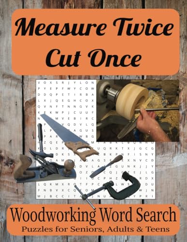 Measure Twice Cut Once Woodworking Word Search: Word Searches with Easy to Read Print about Woodworking and more | 8.5 x 11 inches, 104 pages | 50+ ... Gifts for Vacations, Holidays and Free Time