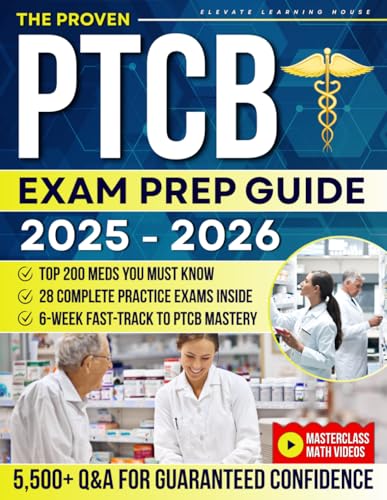 The Proven PTCB Exam Prep Guide: An Updated 6-Week Plan With 5,500+ Questions, 28 Mock Tests, and Step-by-Step Math Videos to Save Time, Cut Anxiety, and Earn Your PTCB Certification With Confidence