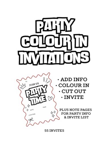Party Colour-In Invitations (book) – Fun, Creative & Personalised!: 55 Invites | Add Name, Time, Date & Location | Colour In, Cut Out & Send | Plus Note Pages for Info & Invite List