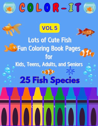 Color It Vol. 5: Lots of Cute Fish: Fun Coloring Book Pages for Kids, Teens, Adults, and Seniors with 25 Fish Species