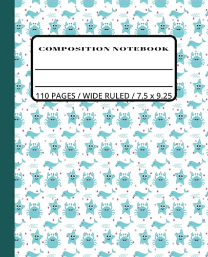 Ocean Composition Notebook: Sea Life Wide Ruled Journal with Cute Fish and Ocean Animals | Perfect for Kids, Teens, or School Use