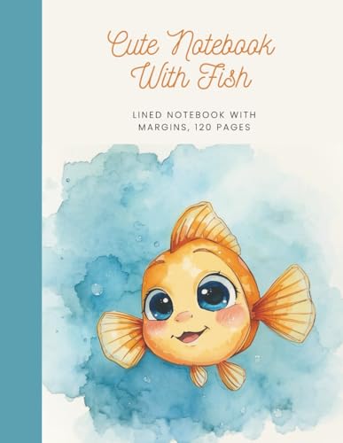 Cute Notebook With Fish: 8.5 x 11 Lined Notebook with Margins, 120 Pages, Matte Cover