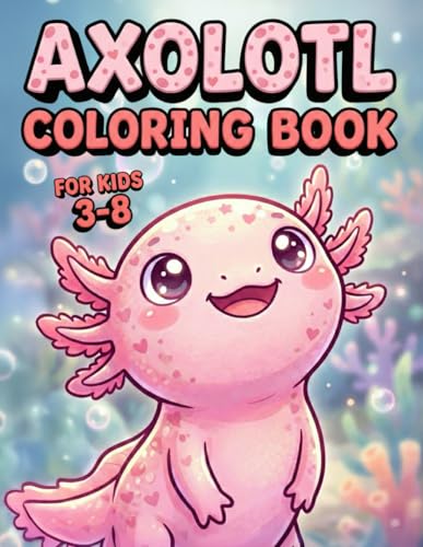 Axolotl Coloring Book for Kids: Cute Mexican Walking Fish, Fun Amphibian Facts, Big Bold Lines, Easy Kawaii Underwater Scenes, Educational Activity for Toddlers, Preschool, Boys & Girls Ages 3-8