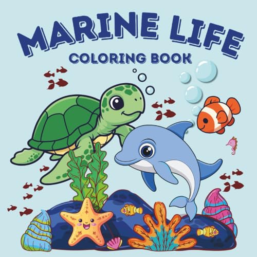 Marine Life Coloring Book: 50 Bold and Easy Illustrations of Cute Fish, Jellyfish, Turtles, and Ocean Animals - Fun Underwater Activity Gift for Toddlers and Kids