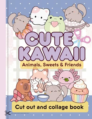 Cute Kawaii Animals, Sweets & Friends, Cut Out And Collage Book: Girly Clip Art Cartoon Drawings for Collaging, Scrapbooking, Junk Journals, Self Made Stickers and Paper Crafts, 20 sheets