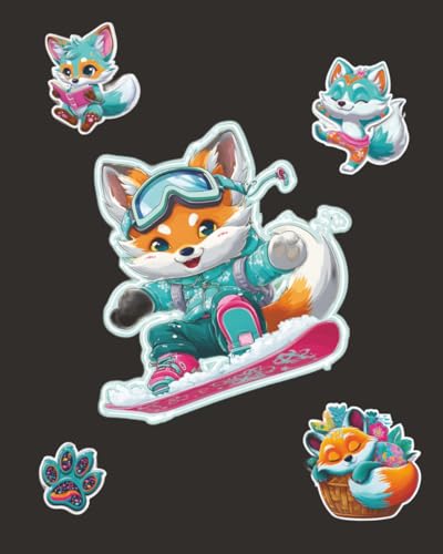 Libreta Grande Bonita Negra 8x10: Cuaderno Cute Kawaii de Zorro Tierno Estilo Stickers