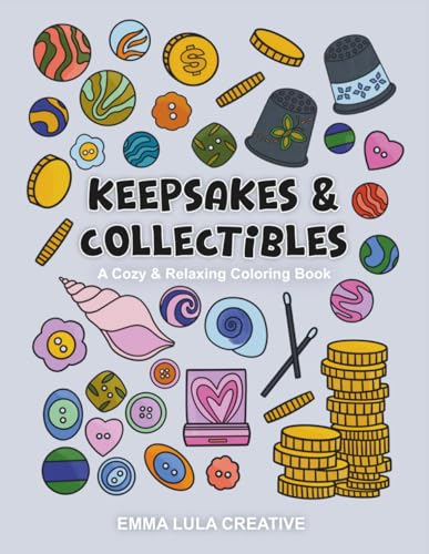 Keepsakes & Collectibles: A Cozy & Relaxing Coloring Book: Coloring Book for Adults, Mix of Simple and Intricate Designs for Relaxation Featuring ... Stickers, Charms, Cute Things And Many More
