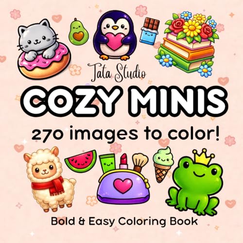 Cozy Minis: A Mini Adult Coloring Book with 270 Cute Designs for Easy Coloring, Relaxation, Stress Relief, Creative Projects, Handmade Gifts, Stickers, and Fabric Transfer Crafts