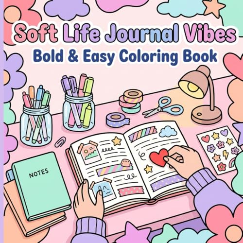 Soft Life Journal Vibes: Bold & Easy Coloring Book: Cute Aesthetic Journaling Scenes with Cozy Desks, Stickers, Washi Tape, Planner Pages, Pattern ... Stress Relief, and Creative Self-Care