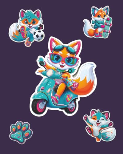 Libreta Grande Bonita Morada 8x10: Cuaderno Cute Kawaii de Zorro Tierno Estilo Stickers