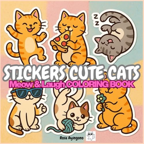 STICKERS CUTE CATS: Coloring book for adults and KIDS, eye-catching and easy, with funny expressions, to laugh and relax.